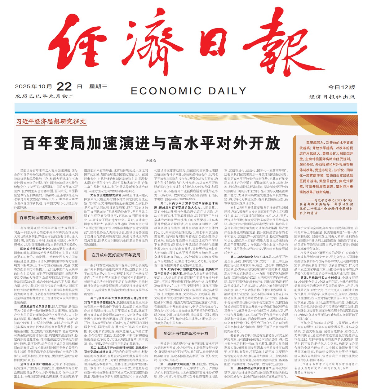 媒体链接:【经济日报】百年变局加速演进与高水平对外开放